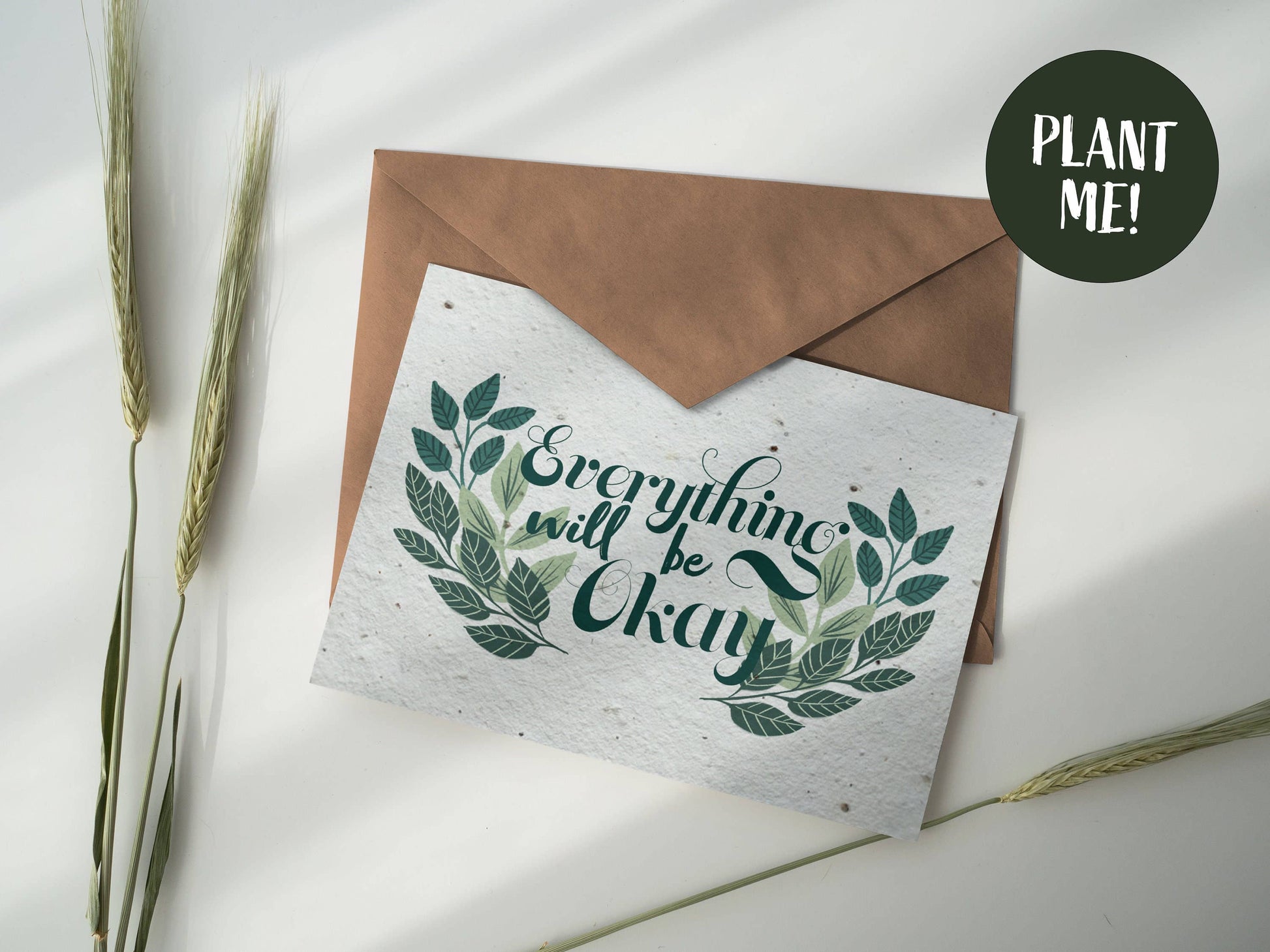 This illustrated 'Everything will be okay' card has been printed on paper packed with wildflower seeds so can be planted after use. The perfect card & gift in one!
